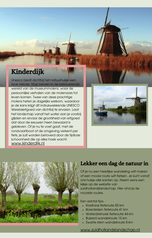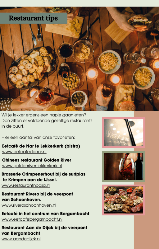 Als ondernemer in de recreatiebranche wil je het je gasten zo veel mogelijk naar de zin maken. Hoe leuk is het dan, dat als je een bevestiging stuurt naar je gasten, een mooi e-book mee kan sturen waar lokale tips in staan met wat er in de omgeving te doen zijn. Zo start voor je gasten de voorpret al een stuk eerder en kunnen ze zich al lekker voorbereiden op uitjes die ze willen gaan doen.